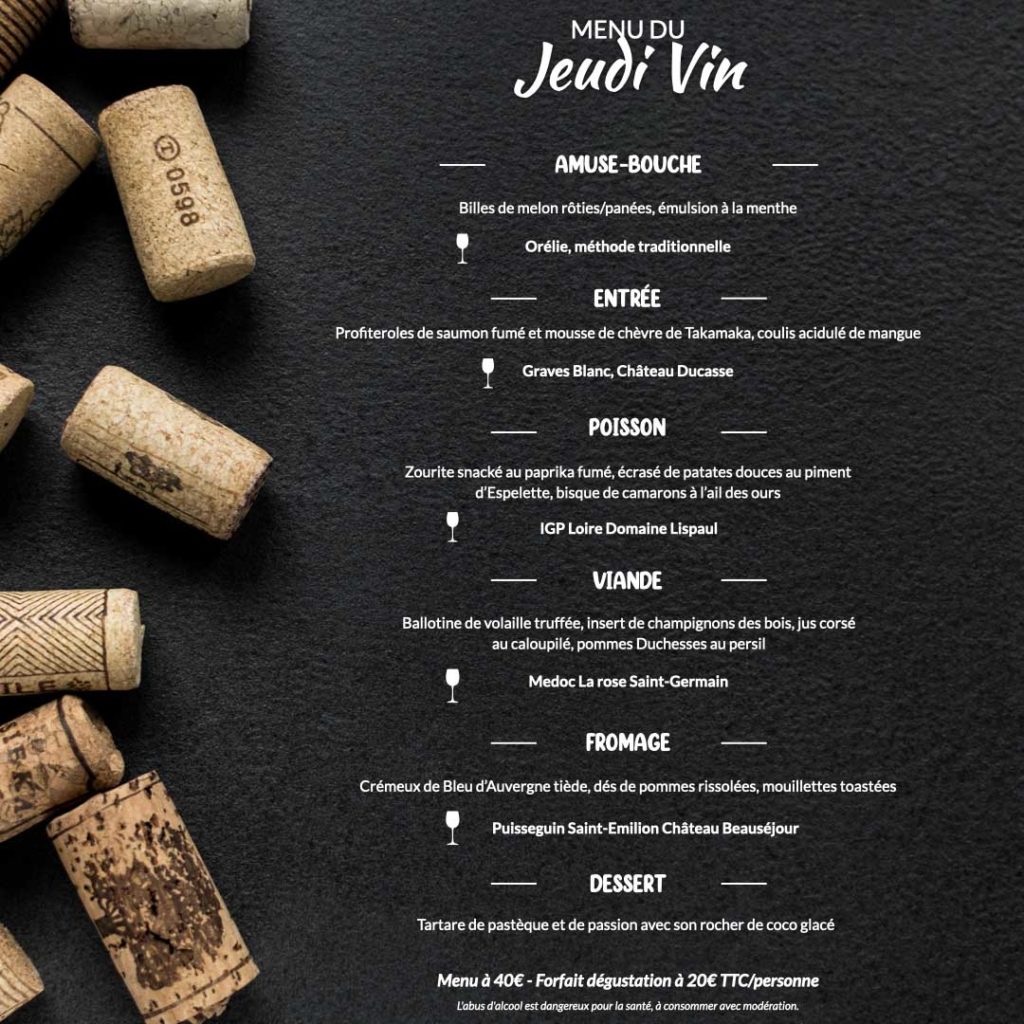 Vous y avez pris goût 😋 ? Jeudi 19 janvier 2023 à partir de 19h30 retrouvez Notre rendez-vous « Jeudi Vin »🍷!