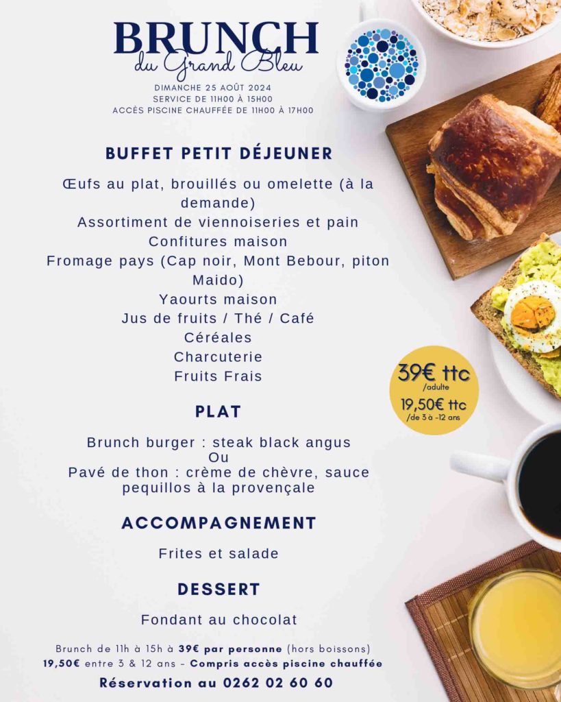 Réservez dès à présent votre table par téléphone au 📞 0262 02 60 60 ou par mail à l’adresse reception@hotel-legrandbleu.com