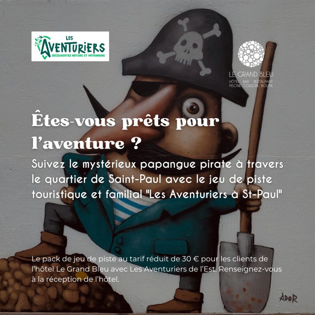 À la recherche d’une activité à faire en famille ou entre amis ? Notre partenaire Les Aventuriers de l’Est vous propose, à tarif préférentiel, son jeu de piste familial « Les aventuriers à Saint-Paul » pour passer une journée en totale autonomie sur le thème de la piraterie !