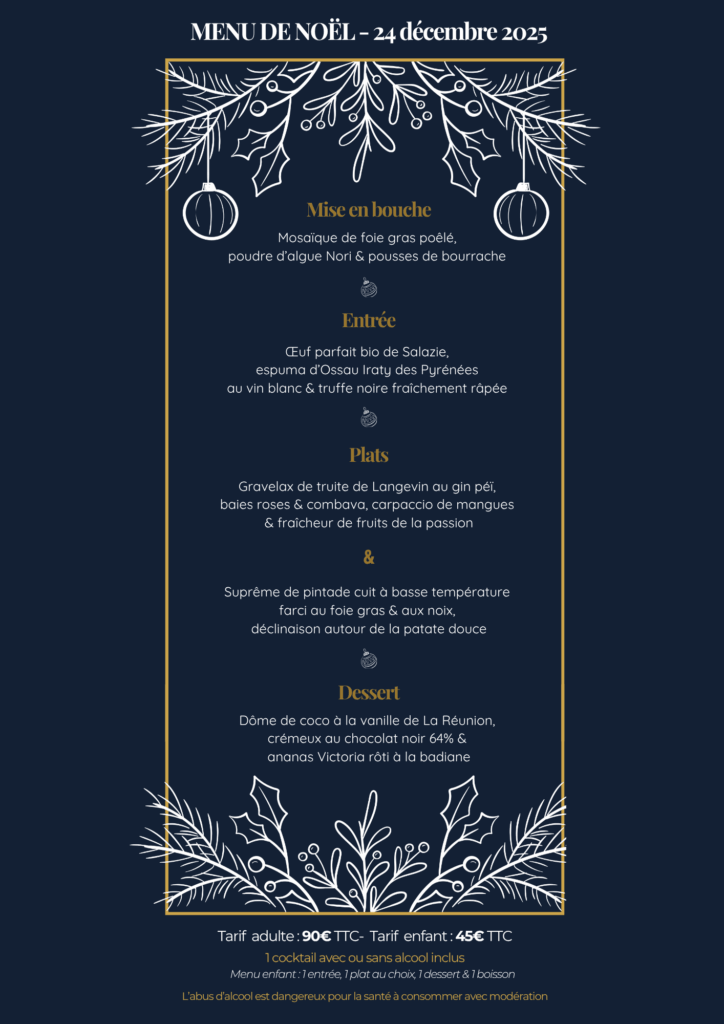 Un Noël sous le signe de l’émotion et du plaisir : des parfums de truffe et de foie gras s’unissent aux saveurs ensoleillées de la truite de Langevin et de l’ananas Victoria rôti.