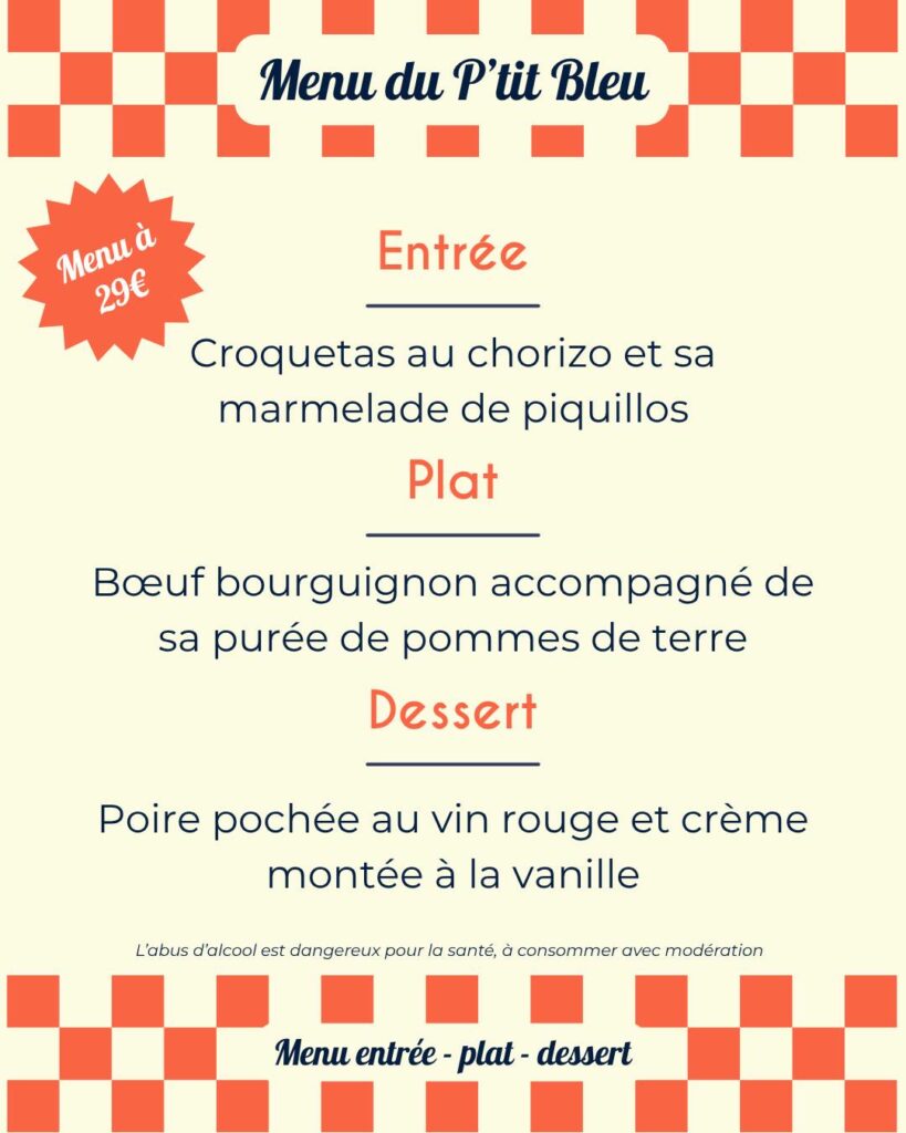 Ambiance conviviale garantie autour de grandes tablées festives et d’un menu « entrée, plat, dessert » à partager avec le sourire 😋